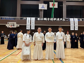 団体戦に出場した 西宮長和会A(先鋒・田添、次鋒・岡田、中堅・新谷、副将・大原、大将・平田)は、息の合った試合運びで決勝まで進出。最後は惜しくも勝利を逃したものの、準優勝という輝かしい結果を残した。